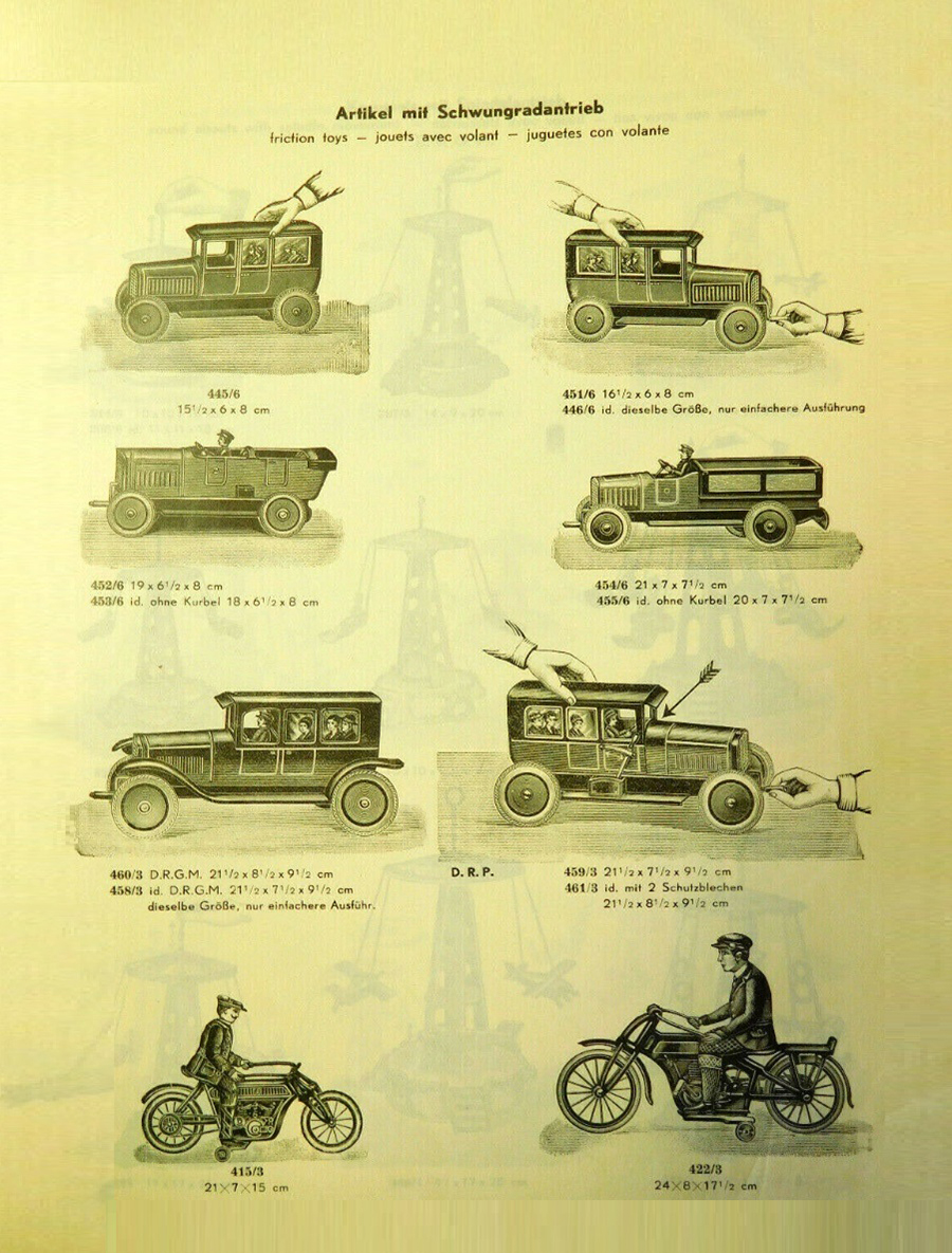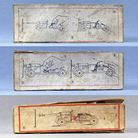 | This piece was marketed and sold by Tippco. The cannon is undoubtedly designed and produced by Tippco. The tractor is an exact mechanical copy of the Hessmobil 1047 tractor. Hess ceased production in 1934 and I believe that Tippco picked up some of the Hess factory tooling, including this tractor. Tippco also marketed and sold another Hessmobil tractor, the 1039, renaming it the “Tippmobil Tractor”. Hess could have also sold this tractor to Tippco while still active, as they did to other toy manufacturers. | ||||