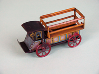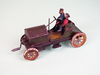 | A Japanese knock off of a Hessmobil. Driver and passenger dressed in Japanese clothing of the day. Mechanics are somewhat similar with a cranked flywheel mechanism. Overall design copied from early small Hessmobil. | ||||
