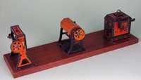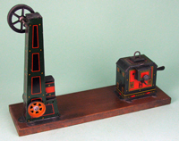 | This accessory is very unique. Many other toy manufacturers made drop hammers, trip hammers, saws, etc., but I have never seen another manufacturer’s version of this fall hammer. The hammer mechanism is raised to the full height and when released comes down with a crashing thud. | ||||