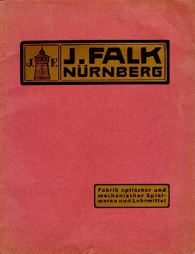 Der Gründer der Firma "Josef Falk" war Reisender bei Carette gewesen. Das Gründungsjahr ist 1896. Um 1898 befand sich der Sitz der Firma in der Hadermühle 2 / 3 zu Nürnberg, ab etwa 1913 in der Solgestraße 19. Da in den Falk - Katalogen aus diesen und späteren Jahren dieselben Druckstöcke und Nummern für die gezeigten Dampfmaschinen, Antriebsmodelle und Dampflokomotiven wie in früheren Schoenner - Katalogen zu sehen sind, ist bewiesen, daß Falk die Schoenner - Fabrikation übernahm. Bei den Eisenbahnen beschränkte sich Falk zuletzt nur auf Dampflokomotiven der Storchenbein - Type, die noch Anfang der zwanziger Jahre, im letzten Jahrhundert, unverändert angeboten wurden. Falk stellte auch einen Metallbaukasten nach Art des Hauses Meccano her. Um ebenfalls der drohenden Enteignung zu entgehen, wurde die Firma Falk 1935 von den Gebrüdern Schaller, den Inhabern der Firma E. Plank, aufgekauft.