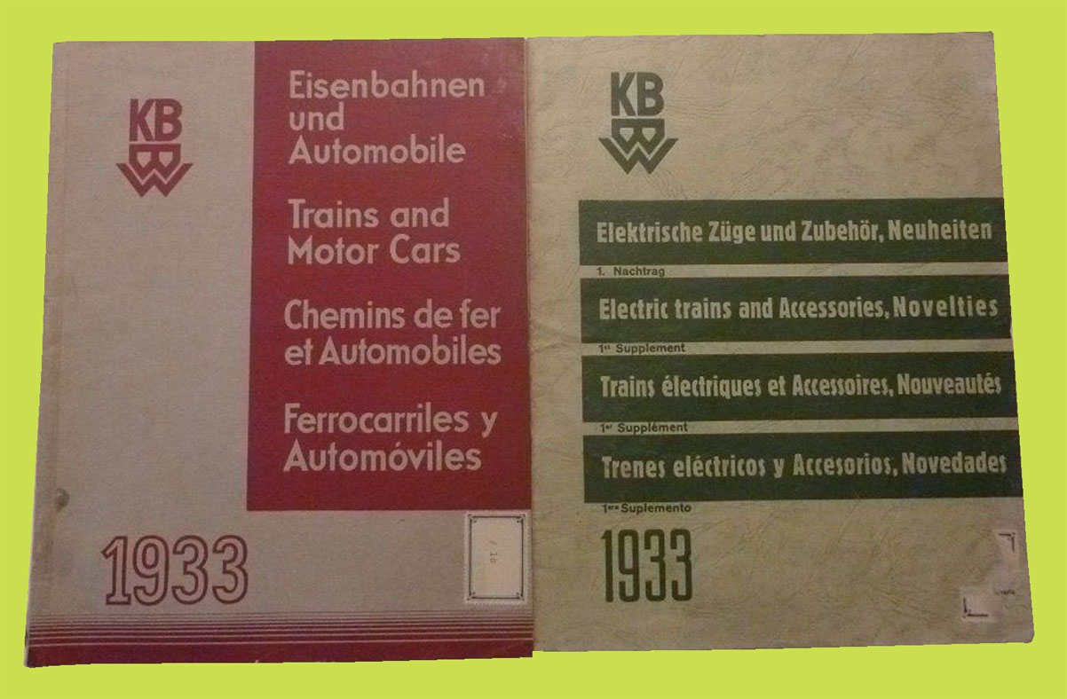 Ende Januar 2014 wurde bei Ebay 2 Bub Kataloge angeboten. Den Inhalt beider Katalogen muss noch an Bing zugeschrieben worden. Bing geriet Ende der 1920er Jahren in Schwierigkeiten und das leitete am 24. August 1932 zu einem Zwangsvergleichsverfahren. Teilen des Sortimentes wurden übernommen durch Falk, Kraus, Fleischmann und Bub. Die obenabgebildeten Kataloge sind Zeuge der damaligen Zeit. Zu dem Bing Werke Logo wurde das Karl Bub Logo zugefügt. Meines Wissens sind es die einzige Kataloge mit dem doppelten Logo, denn 1934 wurde einen zweiten Katalog Nachtrag ausgegeben mit nur noch dem Karl Bub Logo. Der ersteigerte Preis von €322 war auch beachtlich. Es ist wieder ein Beweis, dass es noch immer Sammler gibt, die für seltene Kataloge angemessene Preise zahlen wollen. |