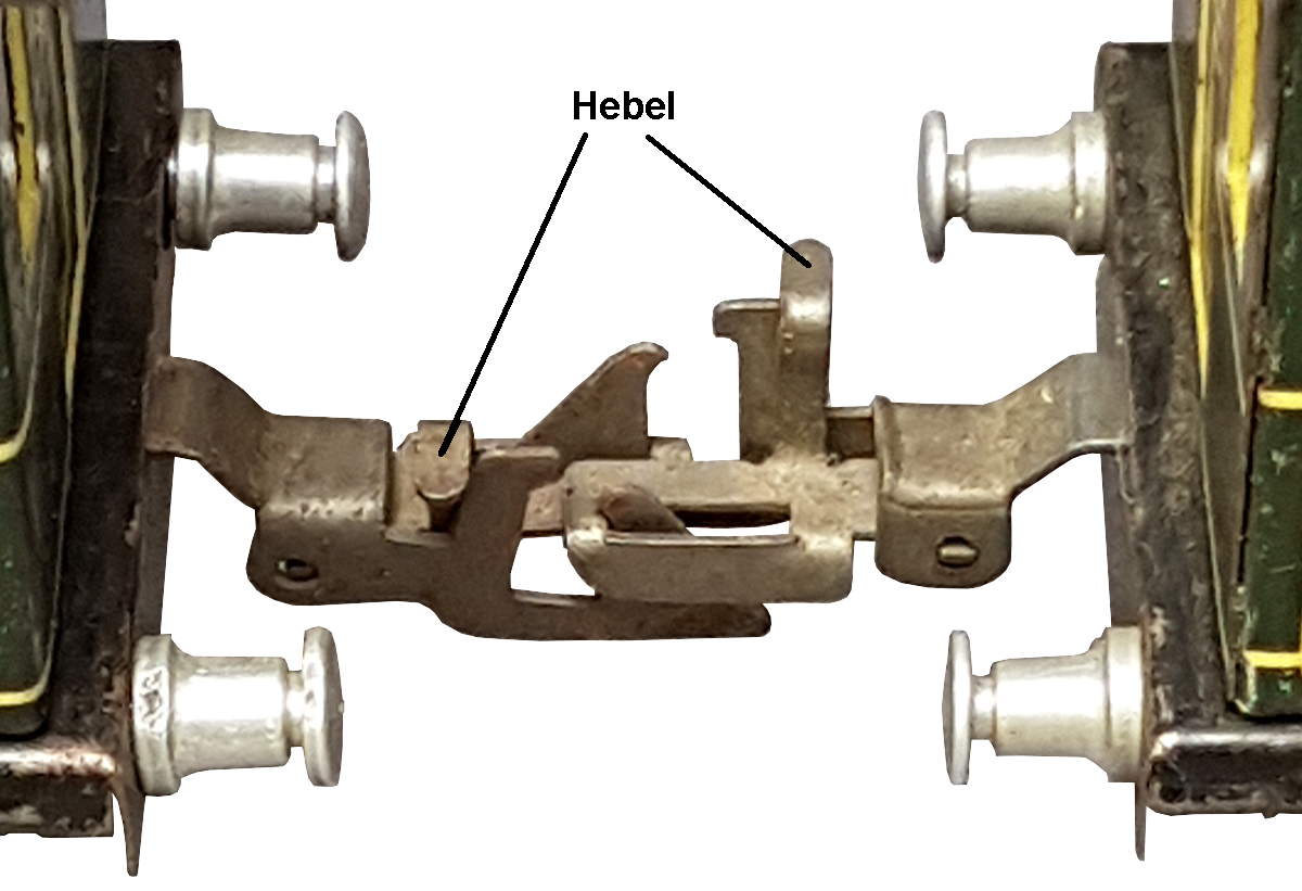 Laut Schiffmann ist diese Kupplung aus der Übergangszeit von Doll zu Fleischmann und damit eigentlich eine Doll-Kupplung. Ich habe den 1937 Doll Hauptkatalog nachgesehen. Es gibt verschiedene Kupplunge, aber von dieser Kupplung ist leider kein Katalogbild. Auf Seite 42 des 1987 GFN Jubileumschriftes ist so eine Kupplung zu sehen, jedoch ohne Hebel. Auf Seite 41 dieses Jubileumschriftes wird noch erwähnt, daß die Kupplung ein Merkmal ist der Nachkriegsproduktion, die wohl während der Vorbereitung zum Spur 0 Programm von 1949 entstanden sind. |