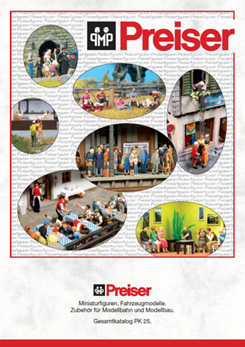Horst Preiser gründete um 1945 die Firma Preiser. Preiser widmet sich seit 1949 der Herstellung realistischer Miniaturfiguren. Anfänglich wurden diese in Handarbeit aus Holz geschnitzt. Erst ab 1957 werden die Figuren mehr und mehr im Kunststoffspritzguß hergestellt. Bis heute werden die Figuren sorgfältig von Hand montiert und bemalt. Paul M. Preiser war schon in den 50er Jahren als Vertreter/Firmaleiter tätig. Um 1983 folgte die Übernahme von Hausser Elastolin. Letztgenannter Firma war in 1904 gegründet. Heute wird die Firma durch Volker Preiser geleitet. |