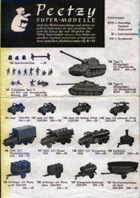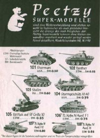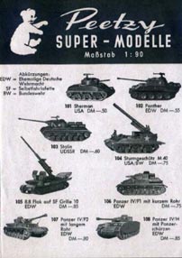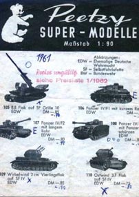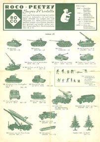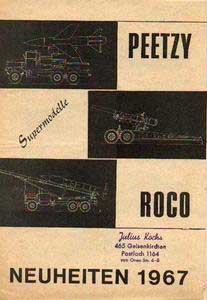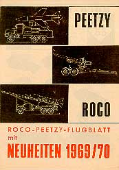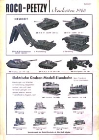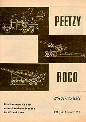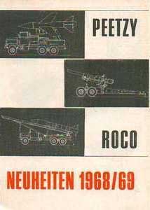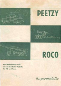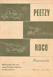 1964 (?) Roco-Peetzy-Typenkatalog, Nr. 184 deutsche Sprache, 17x11,5cm oblong, enthaltet auch den Nachtrag, 48 Seiten (Nachtrag Seite 49 bis und zu Seite 79) enthaltet: 188 105 mm Kanone (EDW) aufgelistet, sondern nicht abgebildet 189 bis und zu 199 aufgelistet, sondern nur in dem Nachtrag abgebildet. |